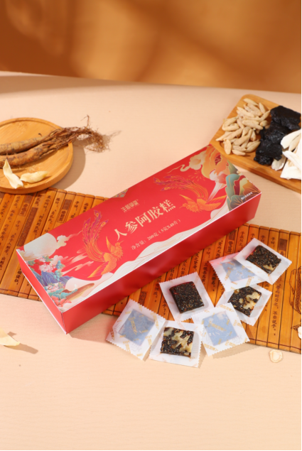 人参阿胶糕:人参添加量高达25%,辅以山楂、麦冬、山药,调和脾胃、助运化,补而不滞;